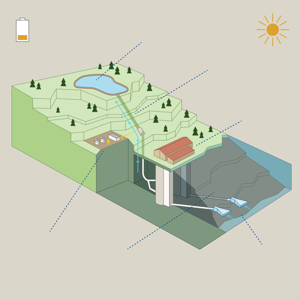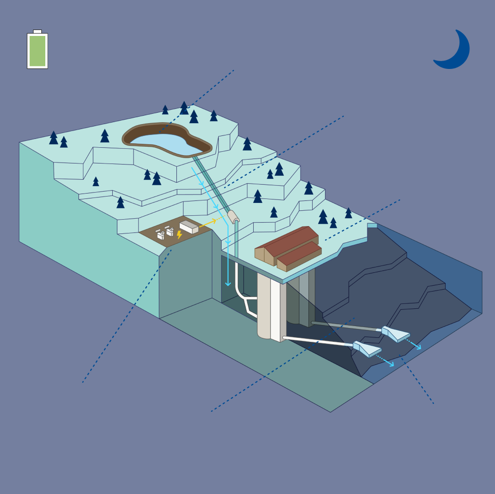 Descobreix com funcionarà la central hidroelèctrica reversible de la Baells a través d’aquesta infografia interactiva. Actua com una bateria natural que equilibra la producció i el consum d’electricitat.